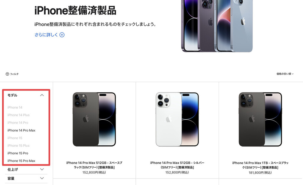 - Apple公式サイトで認定整備済製品の在庫をチェック。