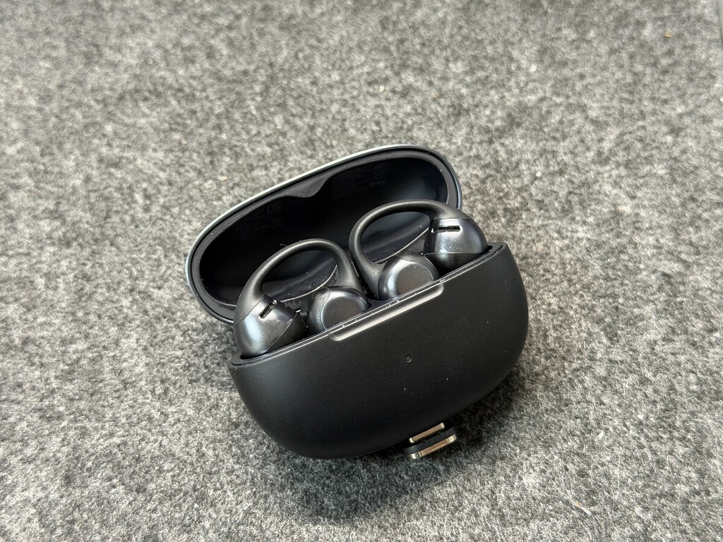 しかし、このOpendots Oneは別格。フレームと干渉しない設計がとにかく素晴らしく、長時間のリモートワークでも付けていることを忘れるほど快適です。OpenFit2も非常に素晴らしい製品でしたが、装着感、持ち運び観点でケースが小さくなったのも非常に嬉しいポイントでした。