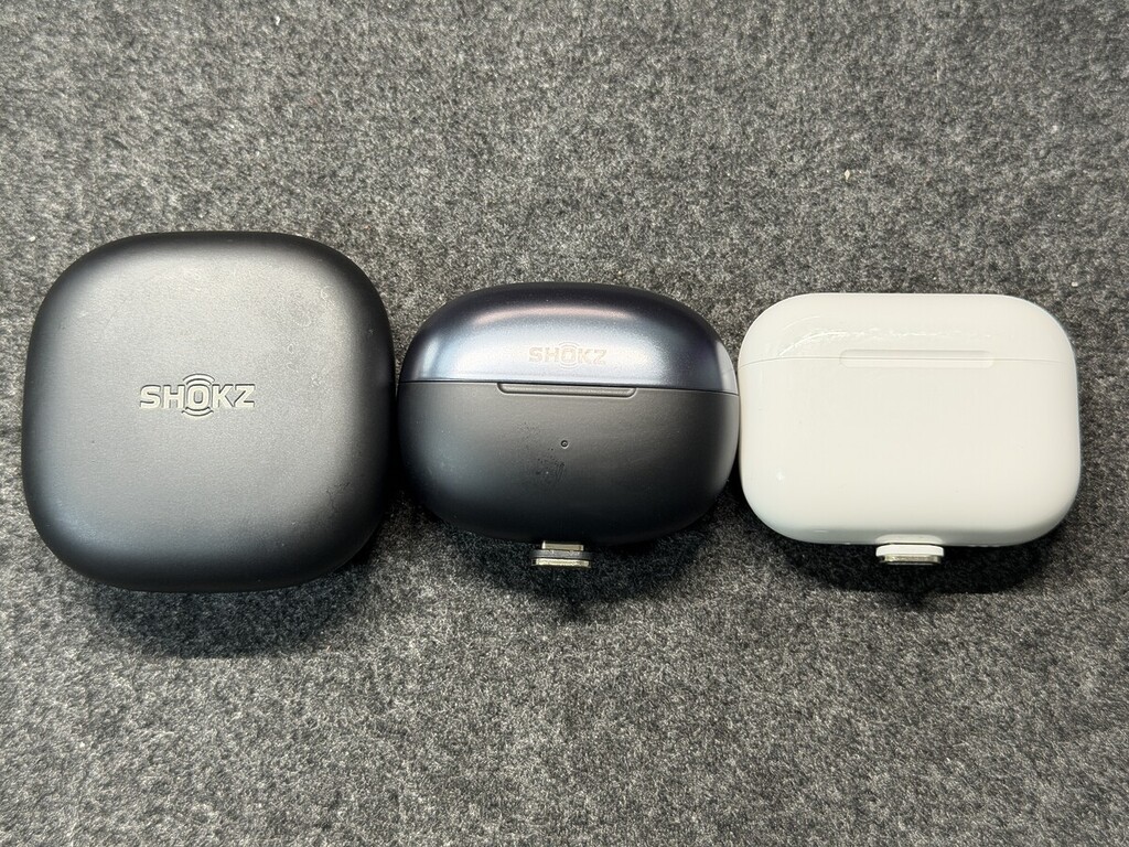 左からOpenFit2、OpendotsOne、AirPodsPro3