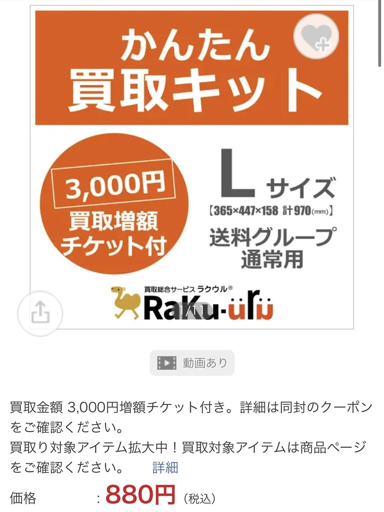 ビックカメラで『ラクウル買取キット(880円)』を購入。これで3,000円の増額権利を確定させます。