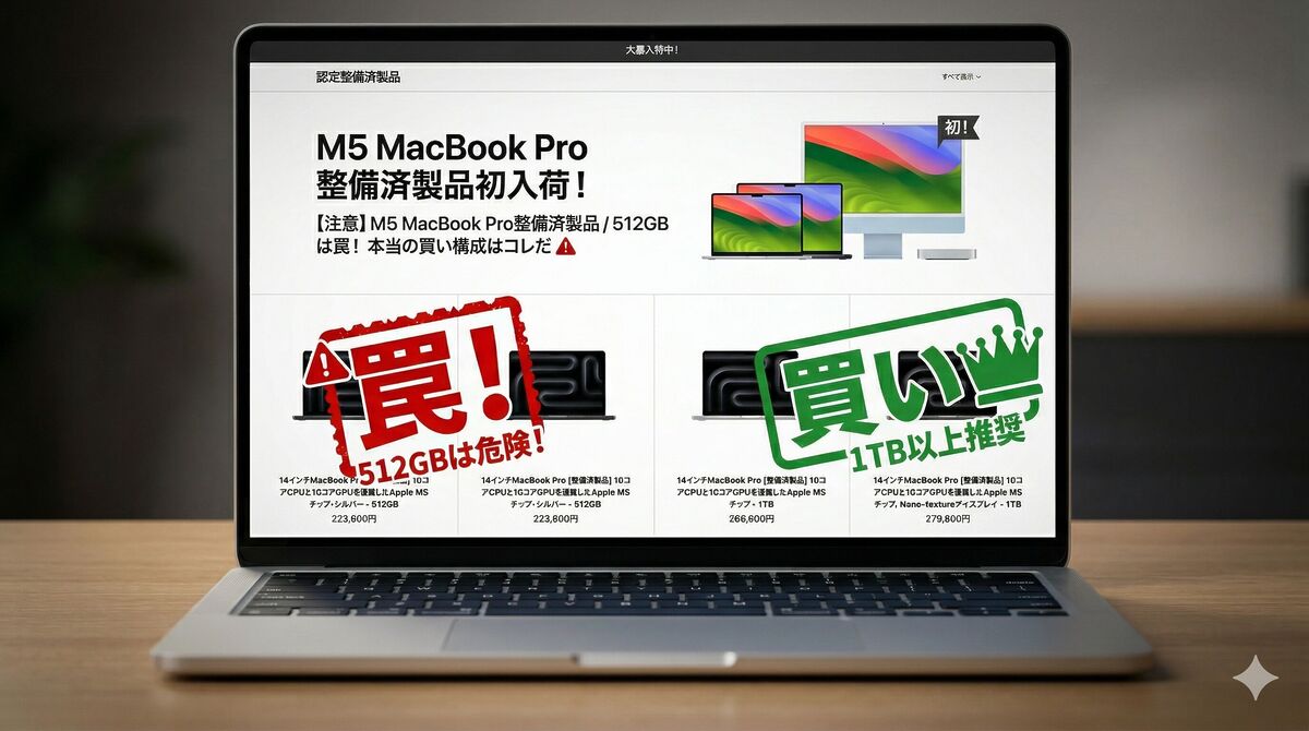 - 【結論】 M5 MacBook Proの整備済製品は「1TB以上」のモデル一択。