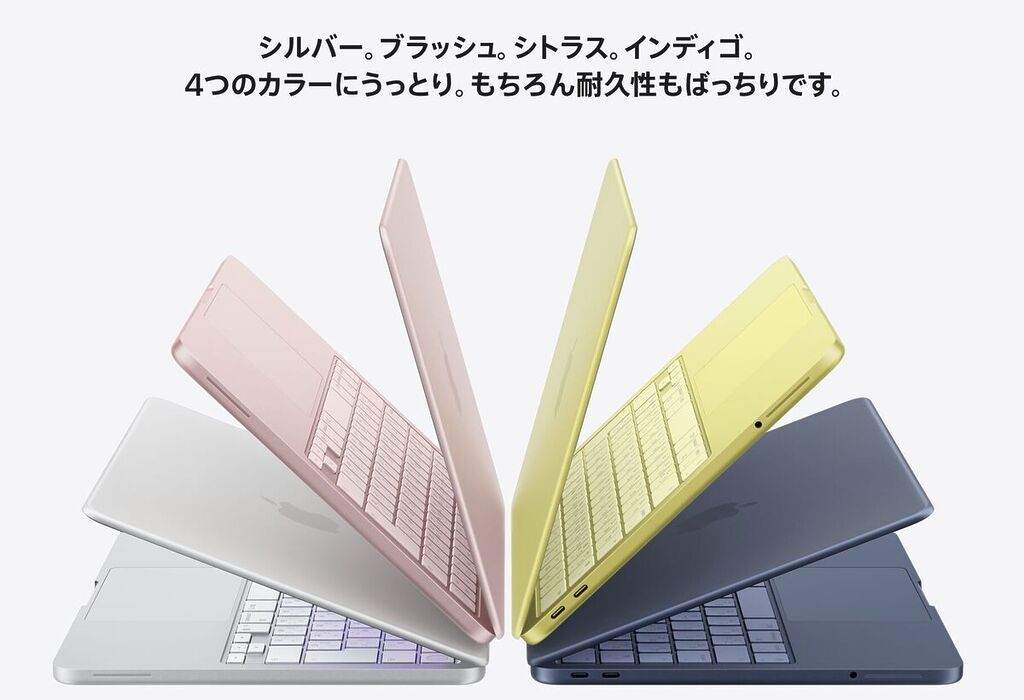 メモリやストレージの価格が高騰しているこのご時世に、「新品のMacBookが10万円を切る」というのは、正直驚きを隠せません。ポップでカラフルな筐体は、見ているだけでもワクワクしますよね。
