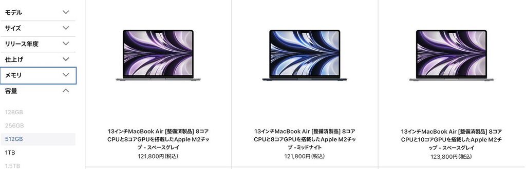 ➜ コスパ最強のM2整備済Air!(※メモリ16GB/SSD512GBで121,800円!)