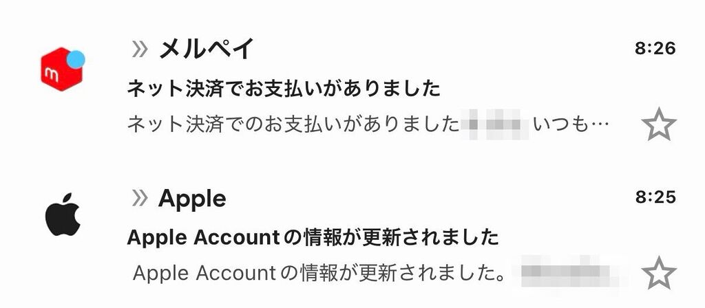 メルカリアカウント、Appleアカウントに設定しているメールアドレスへのお知らせからも確認できます。
