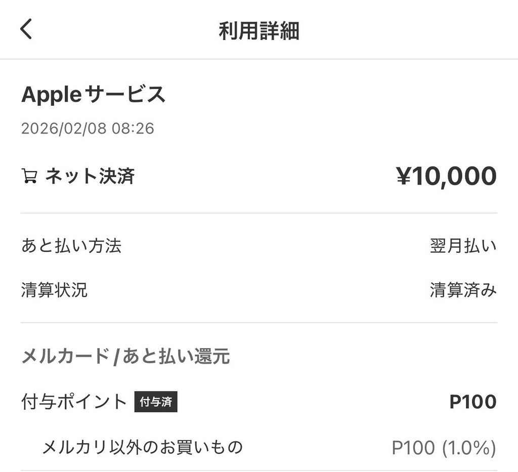 - Apple側の10%還元:キャンペーン終了後(2月末予定)に付与待ち。