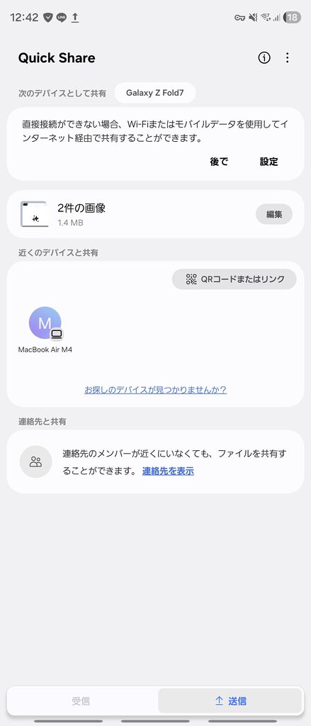 Mac側の準備ができたら、あとはAndroidから送るだけ。Galaxy Z Fold7での手順を例に解説します。