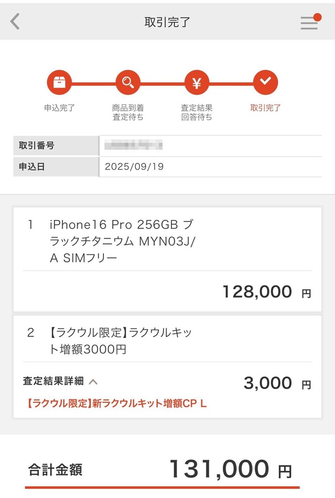 - 17 Proへ乗り換え後の売却: 131,000円(ラクウルにて売却)
