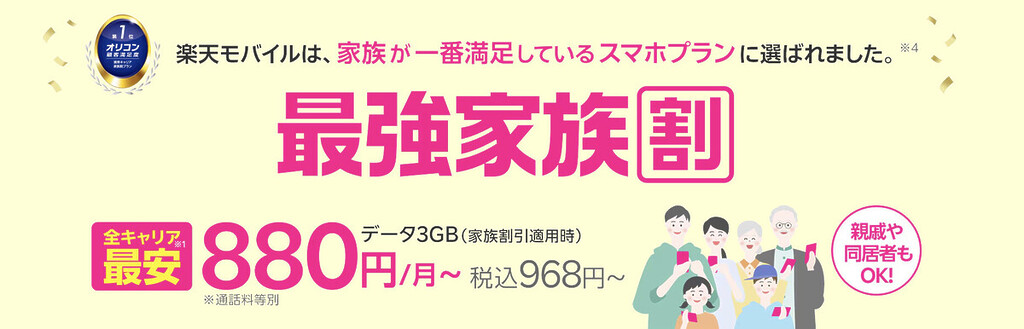 - 家族割の恩恵: 「最強家族プログラム」を組めば、毎月110円割引を受けられます。