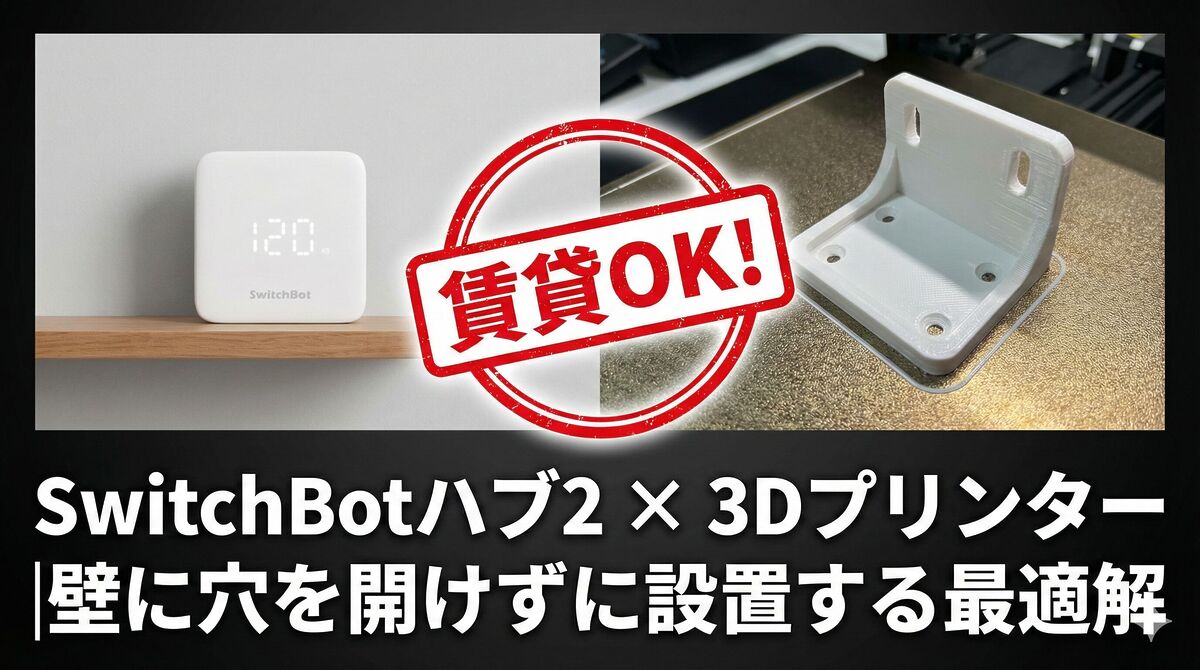 そう考えていた矢先、知人からSwitchBotハブ2を猛プッシュされ、ついに導入を決意しました。今回は単なる開封レビューだけでなく、「3Dプリンターで作った特製マウント」を使って、賃貸でも壁に穴を開けずに設置するハックも合わせてご紹介します。