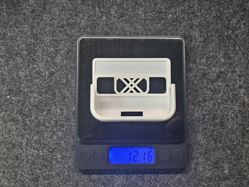 マウント単体の重量は12.16g。 本体と合わせても約74g。ホチキス2〜3本で十分に支えられる重さです。