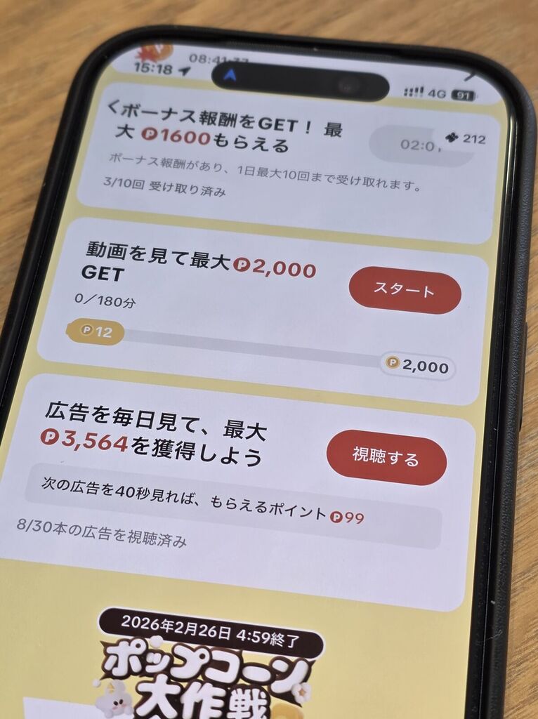 - 毎日「動画を見る」「広告を見る」タスクを消化する